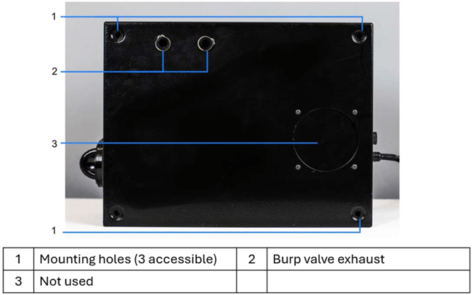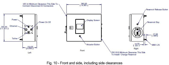 - Be sure to orient the control cabinet so that users/operators have access to and can change the fluid cartridge. Refer to "Control Cabinet" section above for clearance recommendations.