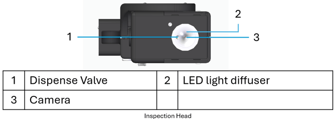 - The inspection head containing the camera, lights, and fluid dispensing nozzle