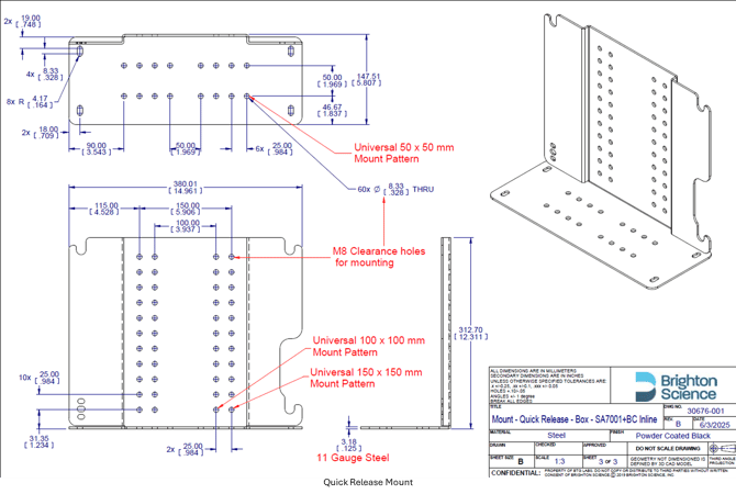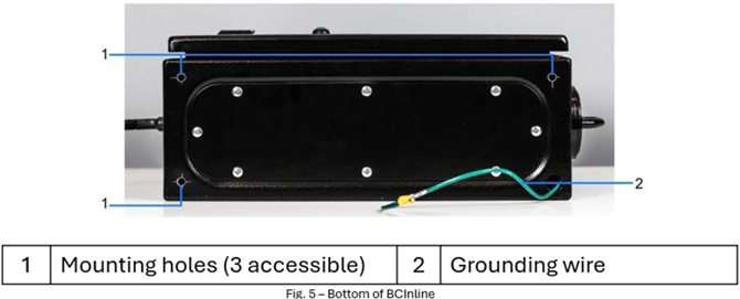 The BCInline system comes with a Quick Release Mounting bracket that should be used to mount the main control cabinet. This mounting system allows for the easy removal of the control cabinet when it needs to be exchanged for either service or calibration.