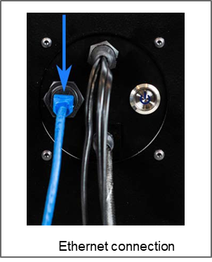 An Ethernet connection is required to interact with the remote API Control of the device. Connect an RJ45 Ethernet Cable(not included) to the port shown below (Ethernet connection).