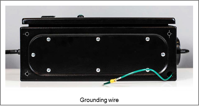 A grounding wire with an M6 ring terminal has been installed and is accessible through the bottom of the control cabinet.