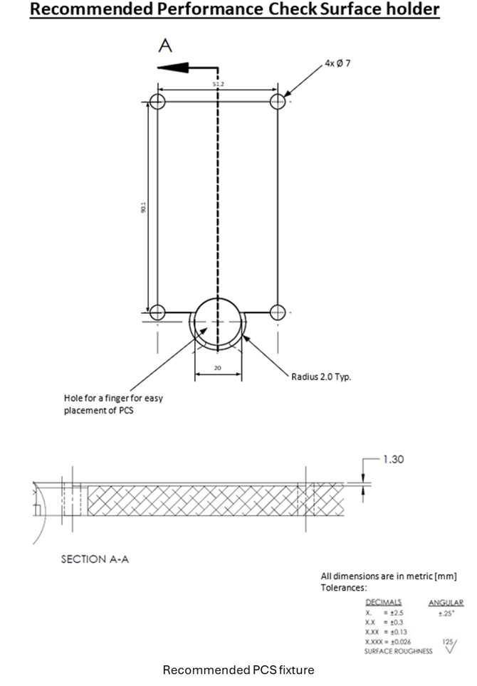 - Ensure that this guideline is also followed when selecting a location for the Performance Check Surface measurements