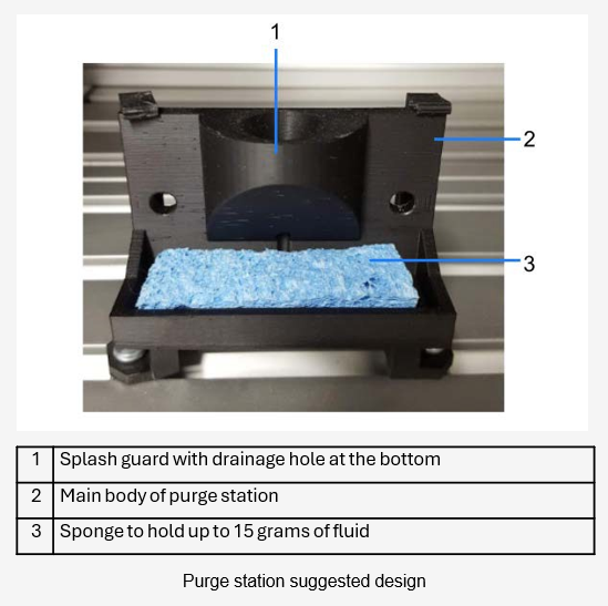 Purging should be performed with the inspection head positioned over the purge station to contain the fluid that is released.