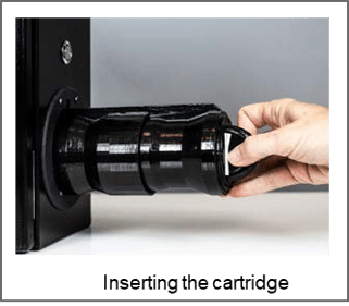 - After removing the cartridge, the message is displayed: "Please insert the cartridge with serial number x", where "x" = the serial number you entered for the new cartridge.