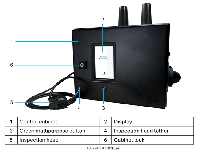 - The BCInline control cabinet which houses the BConnect software, the fluid dispensing system, and associated controls