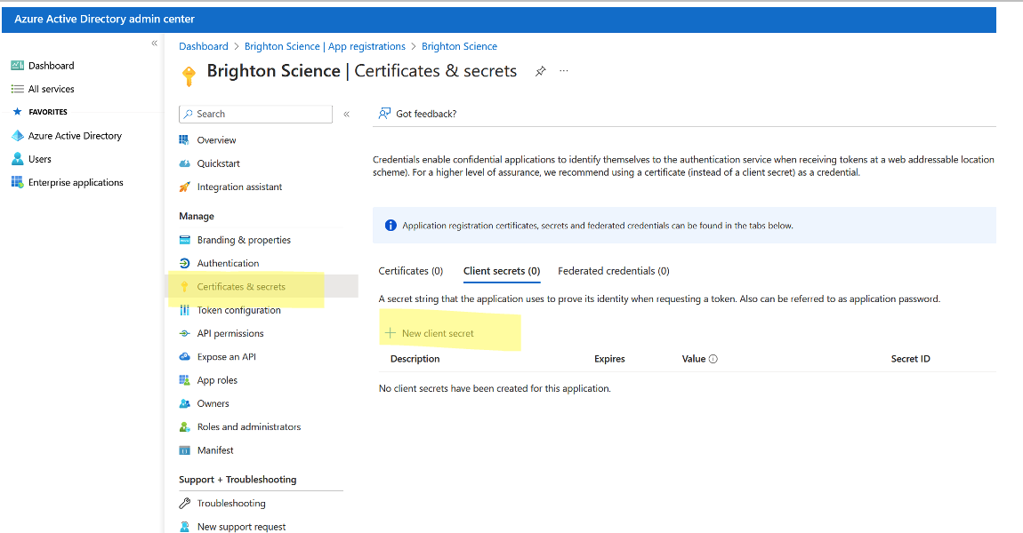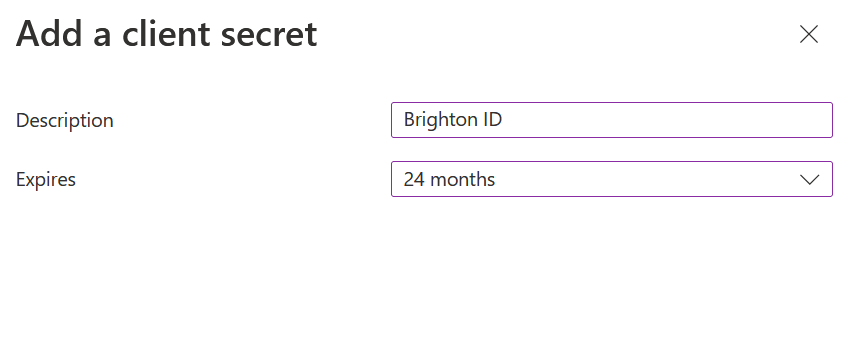 - Name your Secret and set the expiration date(recommend at least 24 months). Then click Add.