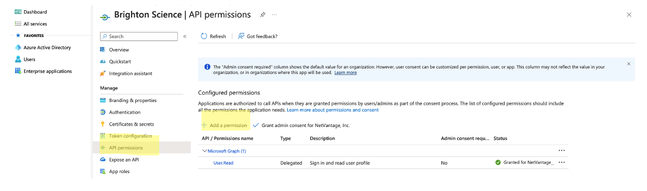 - Click Azure Active Directory, then App Registrations, then click on your new application